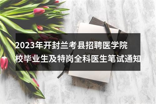根据《兰考县2023年招聘医学院校毕业生及特岗全科医生公告》的有关规定,现将笔试事宜通知如下:一、笔试时间地点