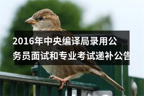 声明:专注 2016年中央编译局录用公务员面试和专业考试递补公告 相关岗位分析;专业指导面试技巧;保障就业成功概率。