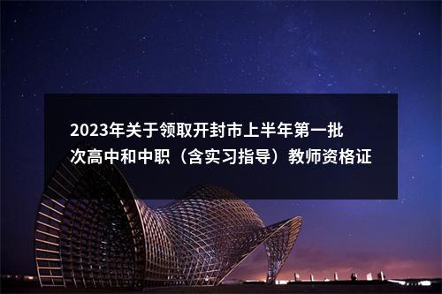 原标题:关于领取开封市2023年上半年第一批次高中和中职(含实习指导)教师资格证书的公告